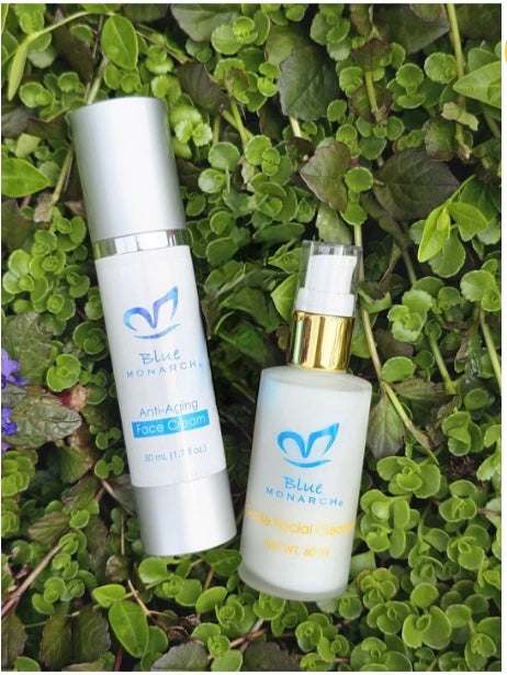 The Blue Monarch Starter Routine brings together two essential formulas and a natural cleansing tool to create a gentle, effective daily routine that supports calm, balanced, healthy-looking skin.